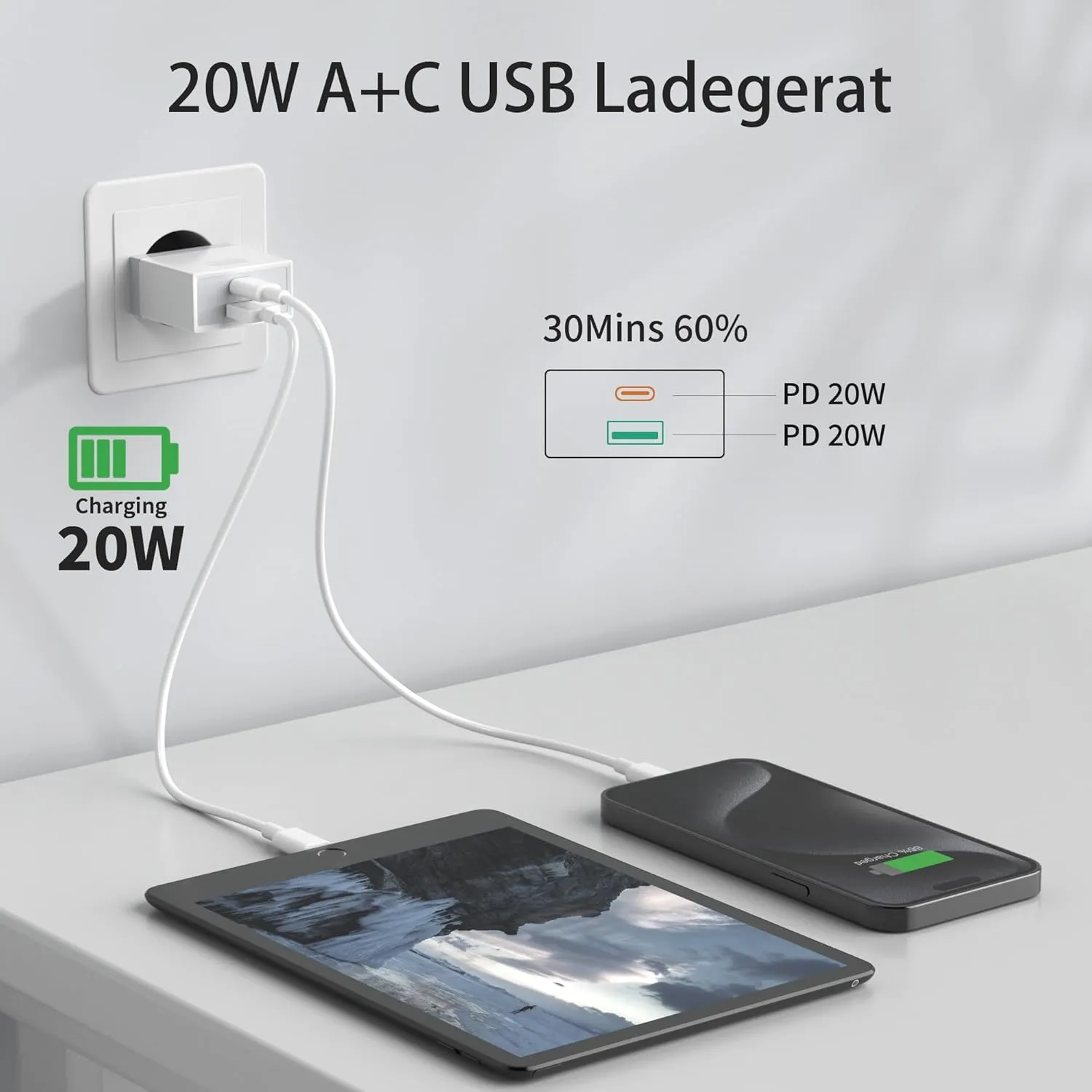 USB C Ladegerät, USBC Adapter Netzteil 20W for iPhone 16 15 14 13 12 11 Pro Max SE XS XR 8 Plus, Galaxy S23/S22/S21, Netzstecker USB Stecker Mehrfach Charger Handy Ladestecker Wufuera