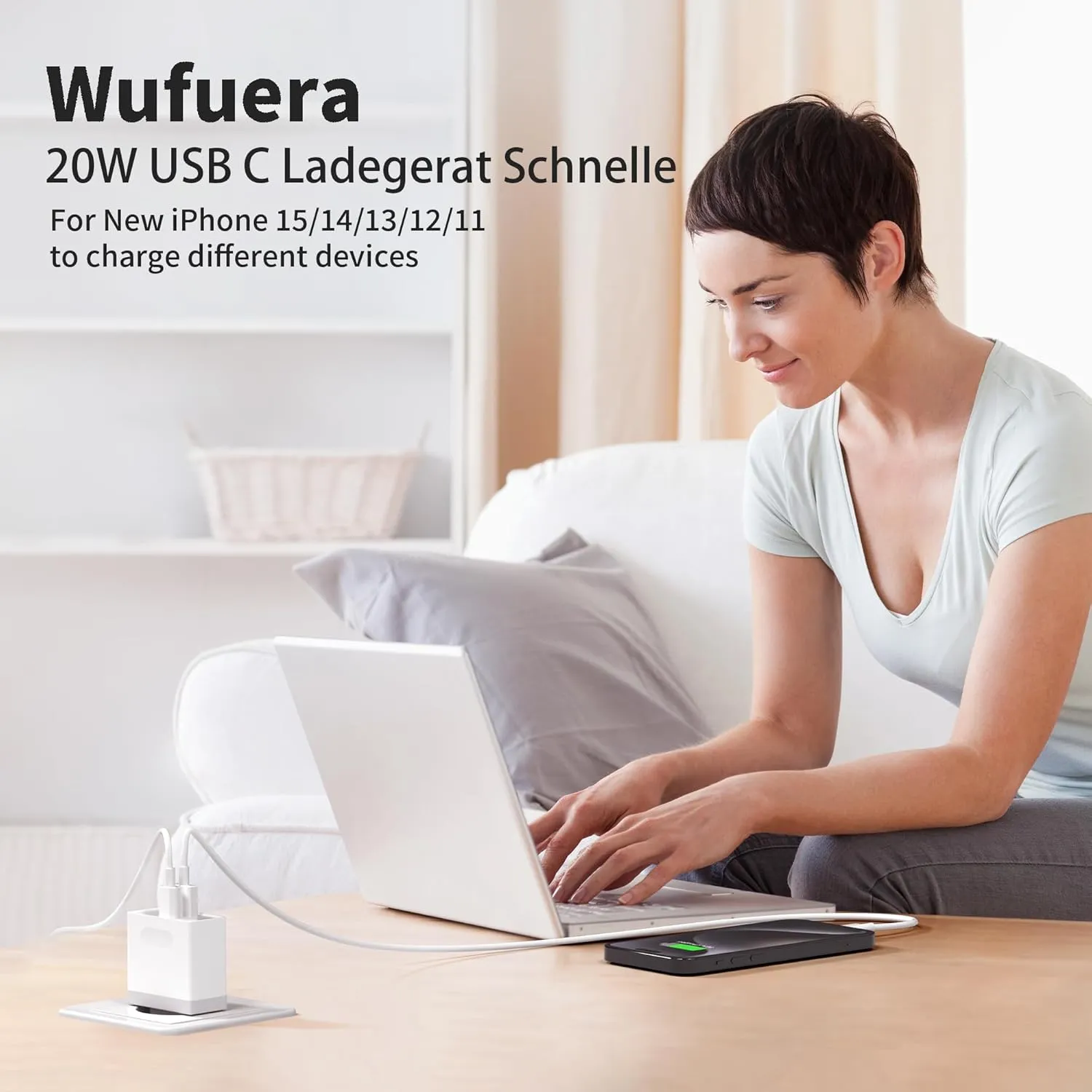 USB C Ladegerät, USBC Adapter Netzteil 20W for iPhone 16 15 14 13 12 11 Pro Max SE XS XR 8 Plus, Galaxy S23/S22/S21, Netzstecker USB Stecker Mehrfach Charger Handy Ladestecker Wufuera