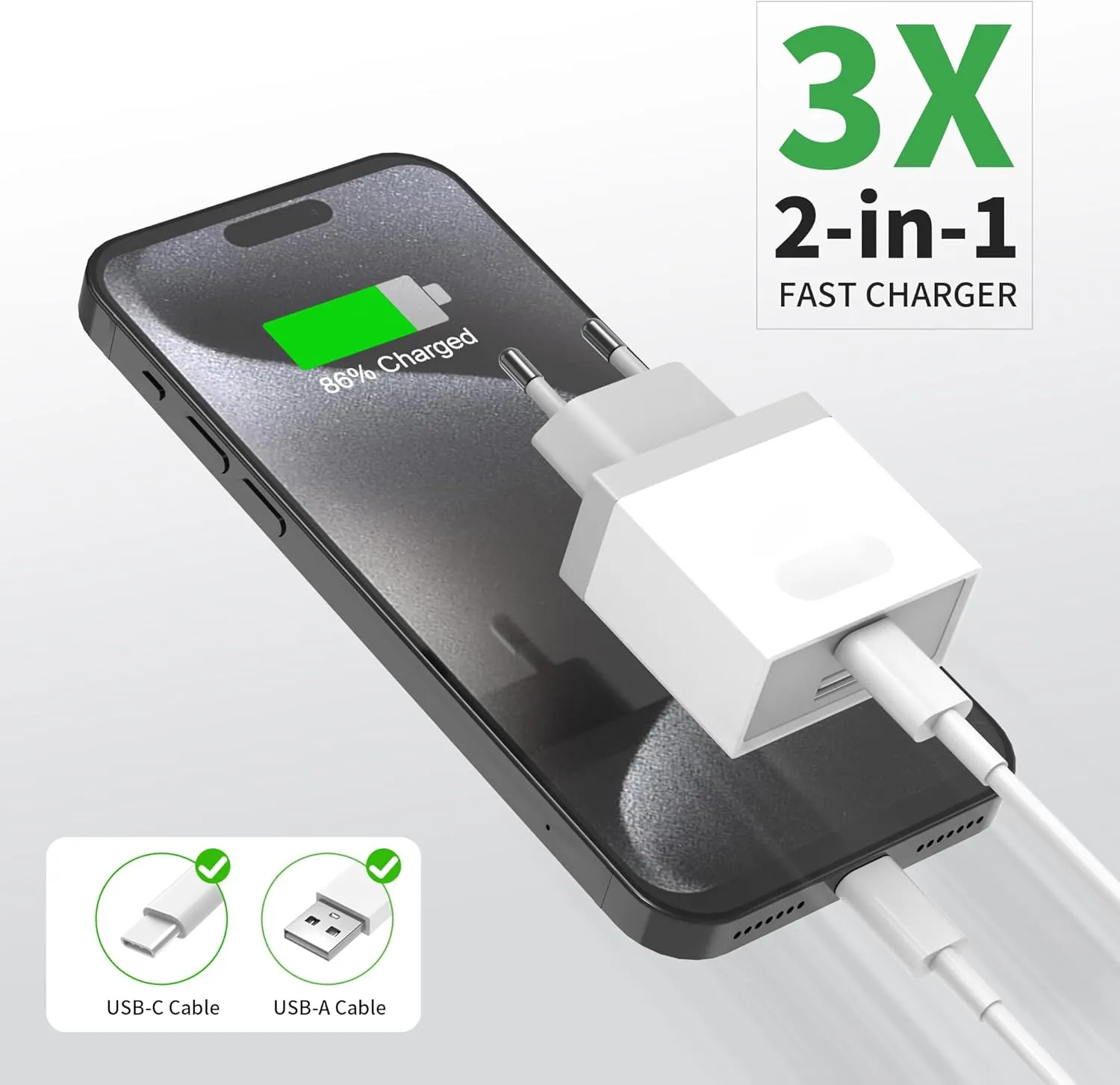 2 port quick plug is compatible with power supply USBC and type C interface, dual port charging output power DC 5V 3A 18W. Stable performance USB adapter supports the fastest speed for charging the phone models....
